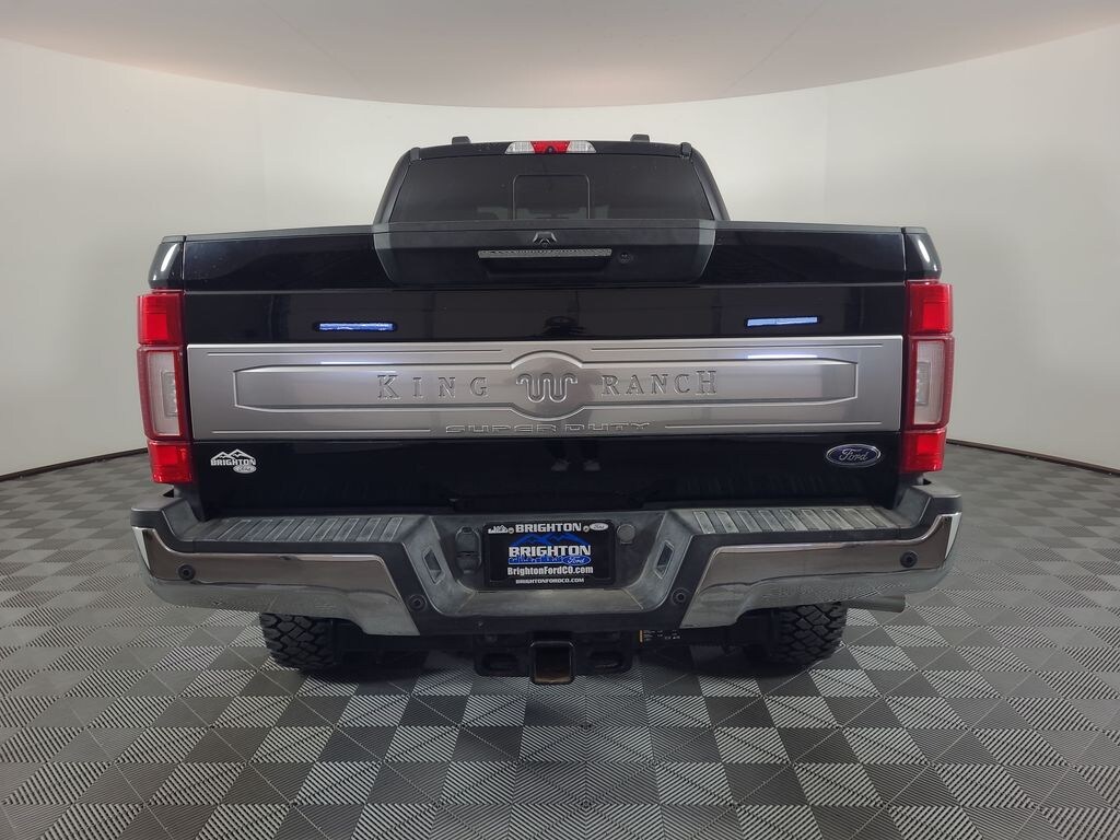 Priced below KBB Fair Purchase Price! ADAPTIVE CRUISE CONTROL, BLIND SPOT MONITORING SYSTEM, COLLISION WARNING SYSTEM, NAVIGATION SYSTEM, TWIN PANEL MOONROOF, LEATHER, BLUETOOTH HANDS FREE, DUAL FACTORY AIR, HTD MIRRORS, PREMIUM WHEELS/TIRES, POWER SLIDING REAR WINDOW, PREMIUM AUDIO, POWER FOLDING SIDE MIRRORS, POWER RUNNING BOARDS, REAR HEATED SEATS, SYNC 3, FORDPASS CONNECT, SPRAY IN BED LINER, KEYLESS ENTRY, KING RANCH ULTIMATE PACKAGE, QUAD BEAM LED HEADLAMPS, UPFITTER SWITCHES, ADAPTIVE STEERING, ROOF CLEARANCE LIGHTS, HIGH CAP TRAILER TOW PACKAGE PTBA, TREMOR OFF ROAD PACKAGE, CHROME PACKAGE, WIRELESS CHARGING PAD, ULT TRAILER TOW CAMERA SYS, ACCIDENT FREE CARFAX, 4WD. Agate Black Metallic 2021 Ford F-250SD King Ranch 4WD 10-Speed Automatic Power Stroke 6.7L V8 DI 32V OHV Turbodiesel