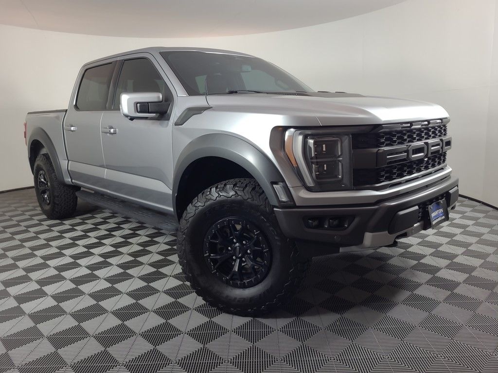 ADAPTIVE CRUISE CONTROL, BLIND SPOT MONITORING SYSTEM, LANE MANAGEMENT SYSTEM, COLLISION WARNING SYSTEM, NAVIGATION SYSTEM, TWIN PANEL MOONROOF, REARVIEW CAMERA SYST, BLUETOOTH HANDS FREE, DUAL FACTORY AIR, HTD/COOLED SEAT PKG, PREMIUM WHEELS/TIRES, PARKING SENSORS, POWER ADJUSTABLE PEDALS, POWER SLIDING REAR WINDOW, PREMIUM AUDIO, POWER FOLDING SIDE MIRRORS, RUNNING BOARDS, REAR HEATED SEATS, SYNC 4, FORDPASS CONNECT, 36 GALLON FUEL TANK, SPRAY IN BED LINER, TONNEAU COVER, KEYLESS ENTRY, POWER TAILGATE, PRO POWER ON BOARD 2KW, PARTITIONED LOCKABLE STORAGE, RAPTOR CARBON FIBER PACKAGE, RAPTOR 37 PERFORMANCE PACKAGE, WIRELESS CHARGING PAD, 4WD. Iconic Silver Metallic 2023 Ford F-150 Raptor 4WD 10-Speed Automatic 3.5L V6 EcoBoost