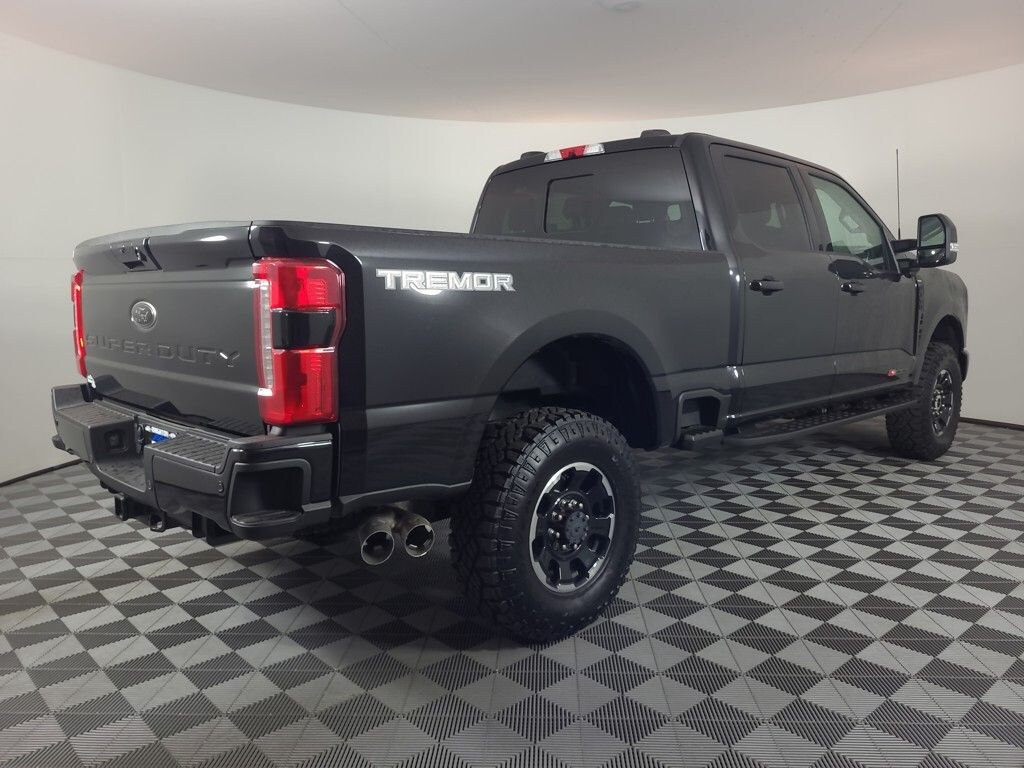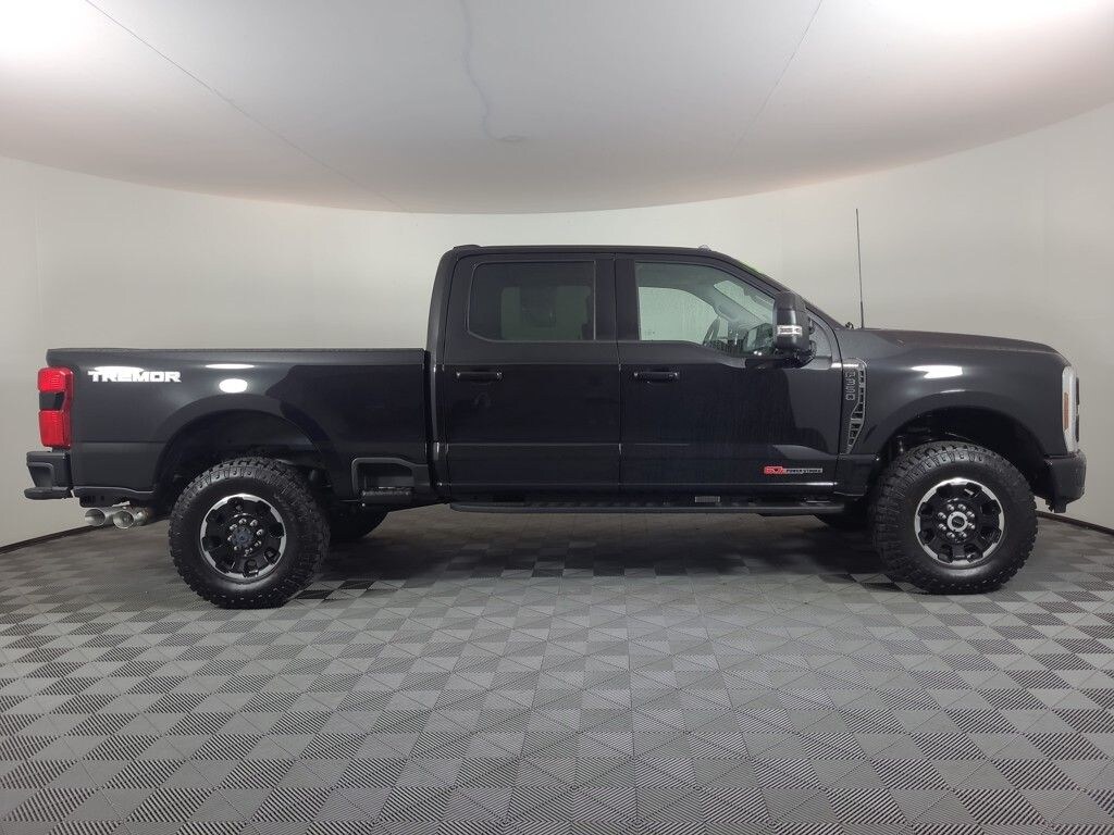 BLIND SPOT MONITORING SYSTEM, ONE OWNER, TWIN PANEL MOONROOF, 360-DEGREE CAMERA, REARVIEW CAMERA SYST, BLUETOOTH HANDS FREE, DUAL FACTORY AIR, HTD/COOLED SEAT PKG, HEATED STEERING WHEEL, PREMIUM WHEELS/TIRES, PARKING SENSORS, POWER ADJUSTABLE PEDALS, POWER SLIDING REAR WINDOW, REAR HEATED SEATS, SYNC 4, SPRAY IN BED LINER, KEYLESS ENTRY, BLACK APPEARANCE PACKAGE, TREMOR OFF-ROAD PACKAGE, ENGINE BLOCK HEATER, ROOF CLEARANCE LIGHTS, UPFITTER SWITCHES, MAX RECLINE DRIVER-PASSENGER SEATS, ULTIMATE PACKAGE, TAILGATE STEP, TRAILER BRAKE CONTROLLER, BANG & OLUFSEN SOUND SYSTEM, ACCIDENT FREE CARFAX, ORIGINAL MSRP $96,230, 4WD, Navigation System. Agate Black Metallic 2025 Ford F-350SD Lariat 4WD 10-Speed Automatic 6.7L High Output Power Stroke V8 Diesel