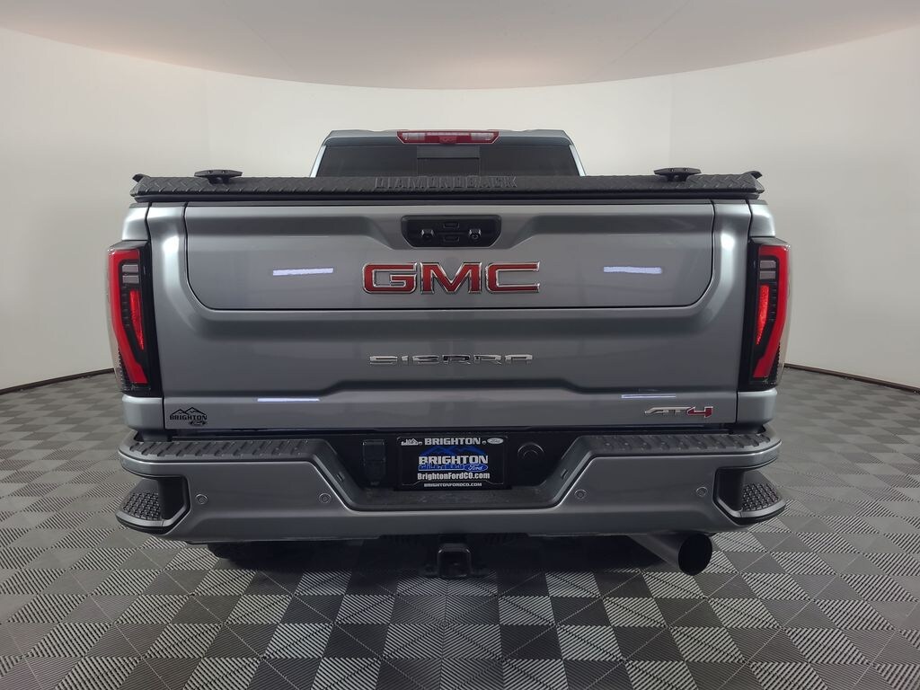 Priced below KBB Fair Purchase Price! ADAPTIVE CRUISE CONTROL, BLIND SPOT MONITORING SYSTEM, LANE MANAGEMENT SYSTEM, COLLISION WARNING SYSTEM, ONE OWNER, POWER SUNROOF, LEATHER, 360 CAMERA VIEW, REARVIEW CAMERA SYST, BLUETOOTH HANDS FREE, DUAL FACTORY AIR, HTD/COOLED SEAT PKG, HEATED STEERING WHEEL, HTD MIRRORS, POWER SLIDING REAR WINDOW, PREMIUM AUDIO, POWER FOLDING SIDE MIRRORS, POWER RUNNING BOARDS, SPRAY IN BED LINER, TONNEAU COVER, KEYLESS ENTRY, AT4 PREMIUM PLUS PREFFERED PACKAGE, LED ROOF MARKER LAMPS, TECHNOLOGY PACKAGE, REAR CAMERA MIRROR, MULTI-COLOR HEAD-UP DISPLAY, GOOSENECK/5TH WHEEL PACKAGE, HITCH PACKAGE, SNOW PLOW PREP / CAMPER PACKAGE, NAVIGATION CAPABLE, APPLE CARPLAY CAPABLE, ANDROID AUTO CAPABLE, ACCIDENT FREE CARFAX, 10-Speed Automatic, 4WD, Jet Black w/Kalahari Accents w/Perforated Leather-Appointed Front Seat Trim. Sterling Metallic 2024 GMC Sierra 3500HD AT4 4WD 10-Speed Automatic Duramax 6.6L V8 Turbodiesel