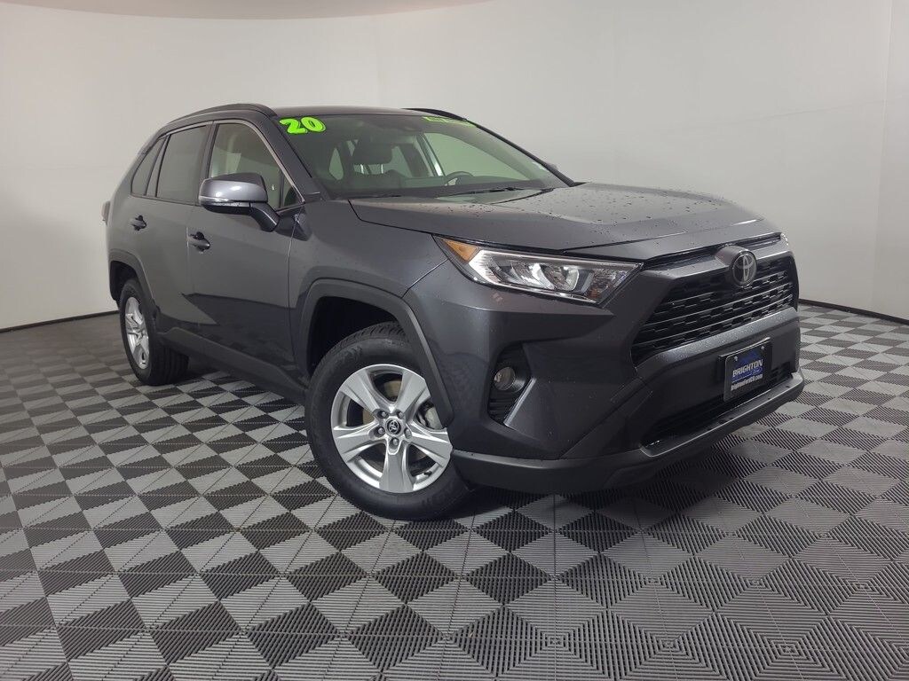 Priced below KBB Fair Purchase Price! ADAPTIVE CRUISE CONTROL, BLIND SPOT MONITORING SYSTEM, LANE MANAGEMENT SYSTEM, COLLISION WARNING SYSTEM, ONE OWNER, POWER SUNROOF, REARVIEW CAMERA SYST, BLUETOOTH HANDS FREE, DUAL FACTORY AIR, HEATED SEAT PKG, POWER LIFTGATE, PREMIUM WHEELS/TIRES, PARKING SENSORS, PREMIUM AUDIO, KEYLESS ENTRY, ANDROID AUTO CAPABLE, APPLE CARPLAY CAPABLE, XLE WEATHER PACKAGE, XLE CONVENIENCE PACKAGE, ACCIDENT FREE CARFAX, AWD, Black w/Fabric Seat Trim. Magnetic Gray Metallic 2020 Toyota RAV4 XLE AWD 8-Speed Automatic 2.5L 4-Cylinder DOHC Dual VVT-i