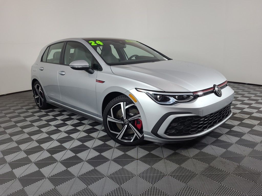 Priced below KBB Fair Purchase Price! BLIND SPOT MONITORING SYSTEM, COLLISION WARNING SYSTEM, POWER SUNROOF, PANORAMA ROOF, LEATHER, REARVIEW CAMERA SYST, CRUISE CONTROL, HTD/COOLED SEAT PKG, HEATED STEERING WHEEL, HTD MIRRORS, PREMIUM WHEELS/TIRES, POWER FOLDING SIDE MIRRORS, ACCIDENT FREE CARFAX. Reflex Silver Metallic 2024 Volkswagen Golf GTI 2.0T SE FWD 7-Speed DSG Automatic with Tiptronic 2.0L TSI DOHC